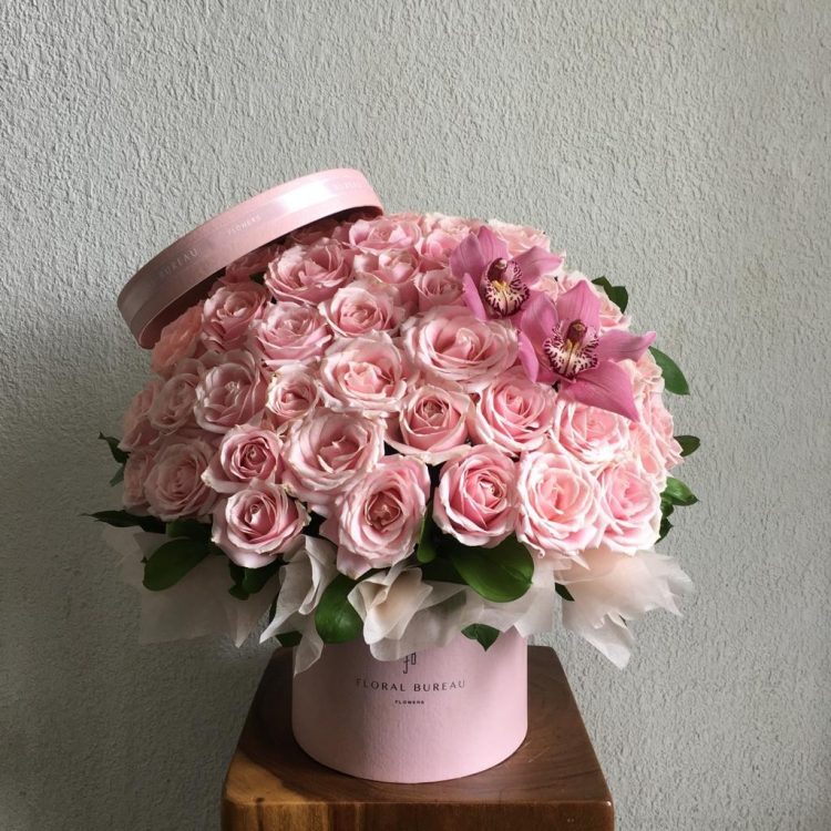 Love blooms bright with this pink glitter box, featuring Rose Holland Hermosa, Pink Alstroemeria, vibrant Fuchsia Matthiola, and charming Fuchsia Baby Roses. Perfect for making her day extra special.